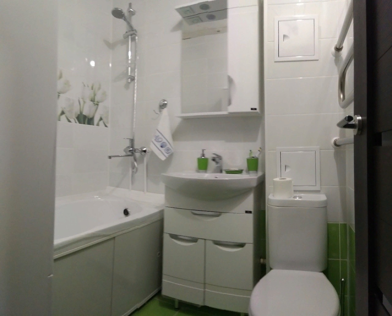 Интерьер ванной комнаты с ванной совмещенной с туалетом